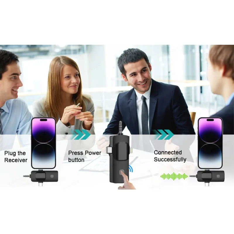 Professional 4 In 1 Wireless Lavalier Microphone for iPhone Android 3.5mm for Radio Live Recording Noise Reduction Mini Microph
